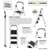 The Gorilla Ladders 3-Step Compact Steel Step Stool is lightweight and folds up extremely thin for easy storage anywhere in your home, office, or garage. It features large, comfortable platform steps that automatically lock into place. The nonslip treads and oversized non-marring feet improve stability and the convenient handgrip makes it easy to climb and carry. This durable steel stool is great for various tasks around the home.