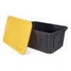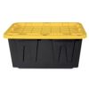 This tote has a recessed lid allowing you to stack this product securely and efficiently. The commercially-designed strong walls of these 27-gallon and 40-gallon Tough Box Totes are designed to stand up to heavy loads, so they won’t crush when stacked. These Tough Box 27-Gallon & 40-Gallon Totes offer scalable storage for soft or hard goods. The snap-fit lid clicks into place and has molded-in holes for zip ties or padlocks. The dimensions are 30.9″ L x 20.3″ W x 14.6″ H. These features combine to make this an excellent heavy-duty storage or moving tote.
